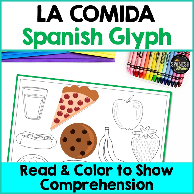 This Spanish glyph activity combines reading comprehension, visual arts, and critical thinking. Students read clues in Spanish, color a glyph to represent their preferences, and answer comprehension questions. It’s an easy way to differentiate for students’ language level, while reinforcing Spanish food vocabulary like frutas y verduras.