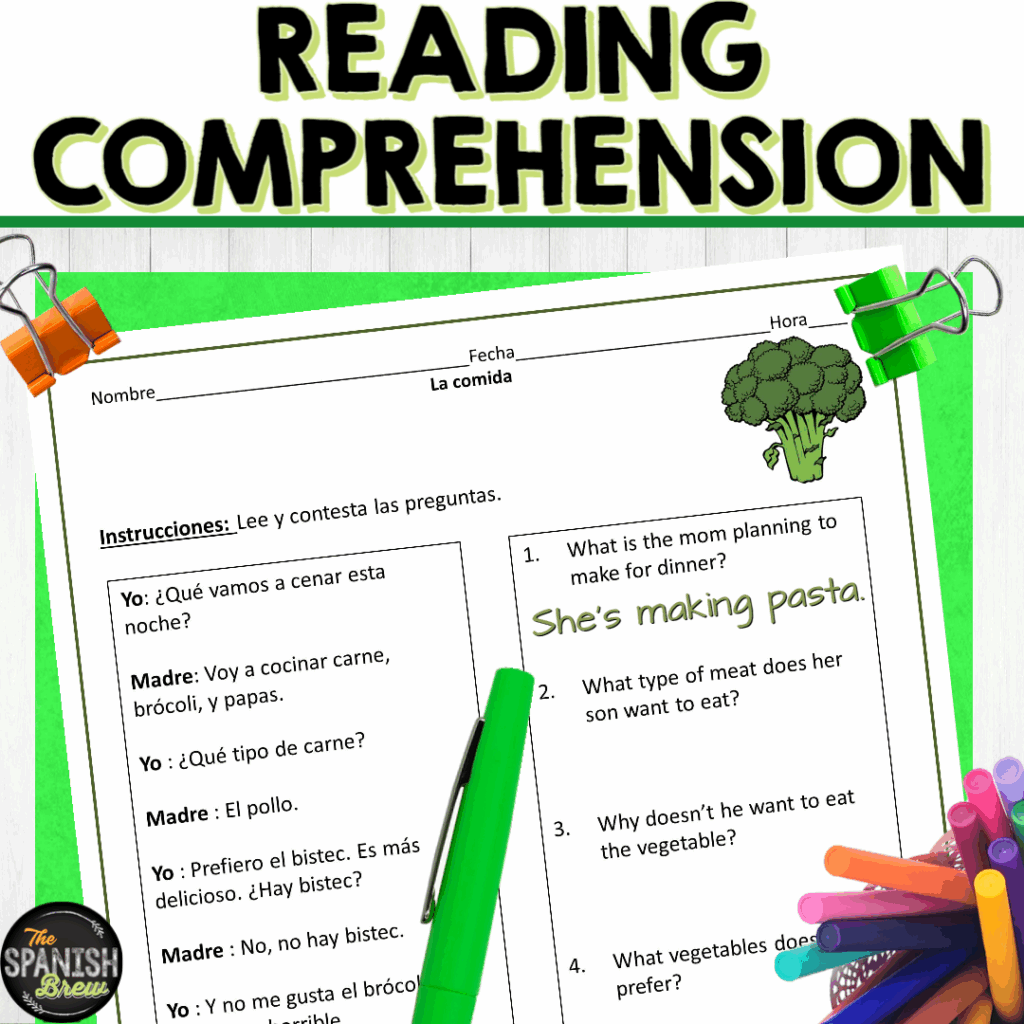 Need a close reading activity that hits vocabulary, grammar, and culture? This reading comprehension pack is full of realistic passages about daily eating habits, food preferences, and cultural dishes in Latin American countries. This is a great way to introduce different foods while making cross cultural comparisons. and explore different types of food from Spanish-speaking countries.