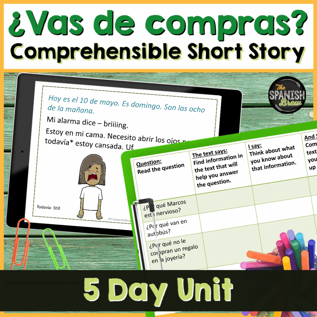 Spanish Short Story About Shopping + Reading Comprehension Activities