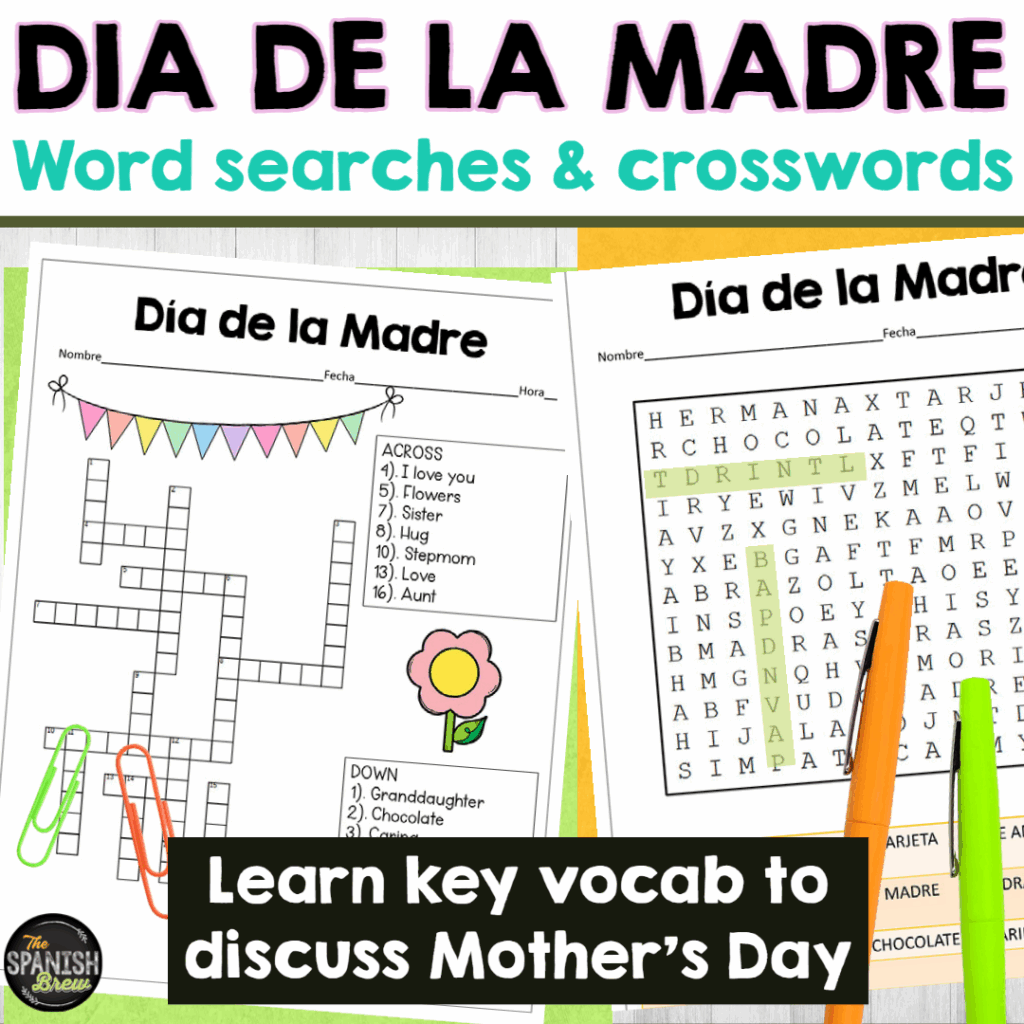 Spanish Word Search + Crossword Puzzle (Mother’s Day Vocabulary)