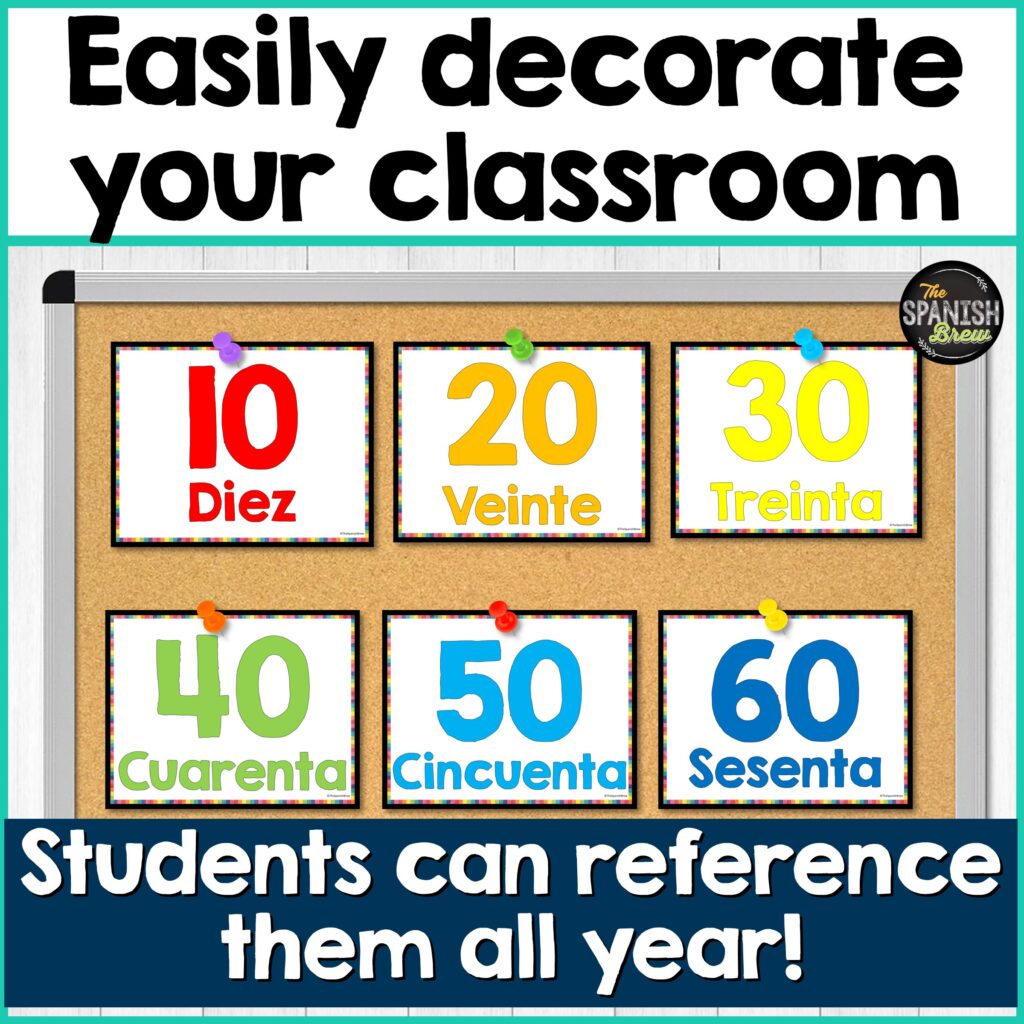 ✅ The posters make great Spanish classroom decor while reinforcing regular numbers.