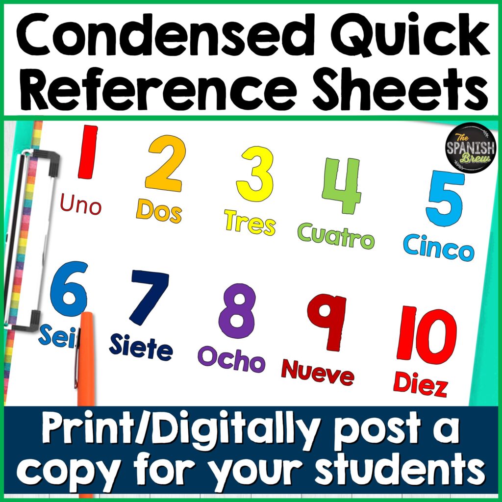 - Hang the Spanish numbers posters around your classroom and have students refer to them during class practice.