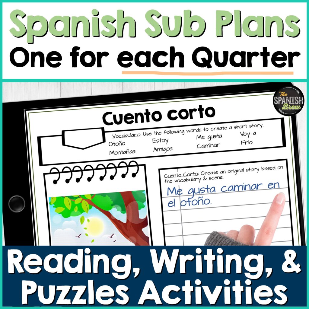 - Don’t forget cultural connections. Even on a sub day, students can explore the Spanish-speaking world through short stories and comprehension questions.