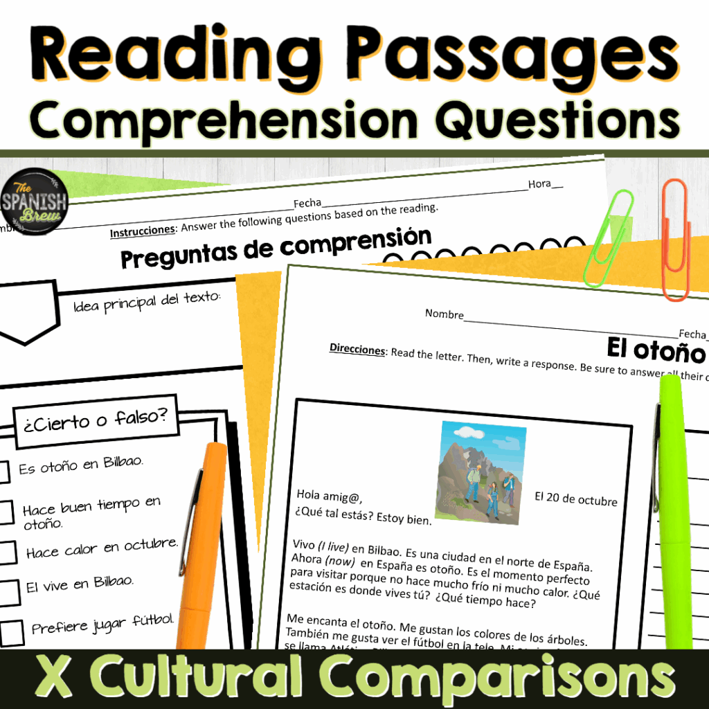 One of my favorite things about these emergency Spanish sub plans is that they’re organized by season. That means no matter when Spanish teachers need them — fall, winter, spring, or end-of-year — you’ll have cultural activities and comprehension questions that actually make sense for the time of year.