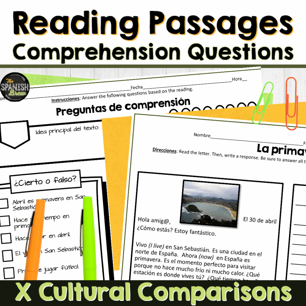 - Features comprehension questions and a short reading passage to help students practice language skills without you having to lift a finger.